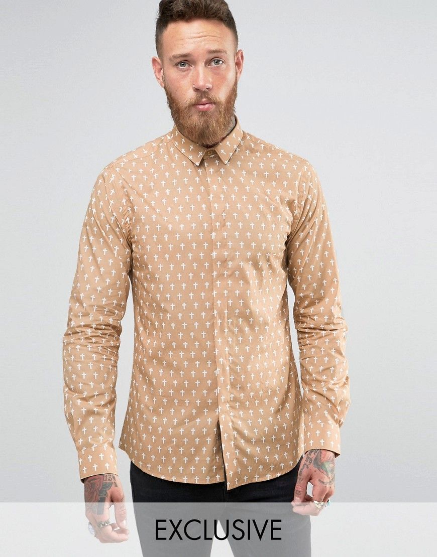 Noose & monkey - - Chemise à imprimà croix - Fauve
