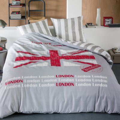 Parure housse de couette + taie UNION JACK rouge/blanc/gris