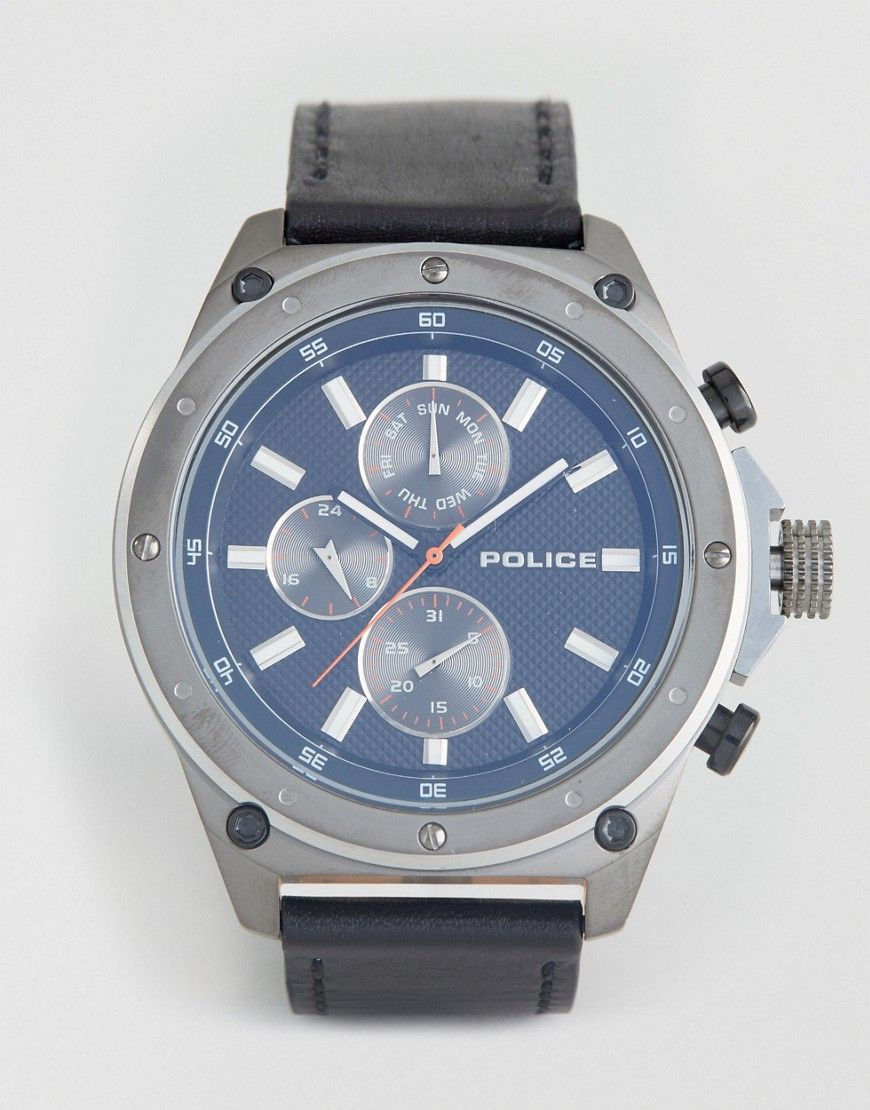 • Police - Contact - Montre homme avec bracelet en cuir noir et cadran multifonctions - Bleu - Noir