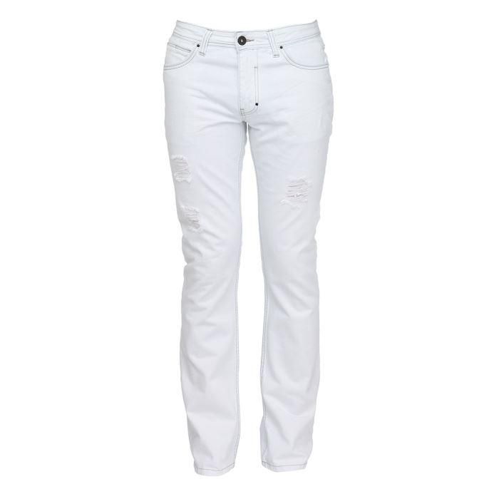 Jean de coloris blanc, signé Redskins. Fermeture boutonnée. Coupe droite. 4 poches.