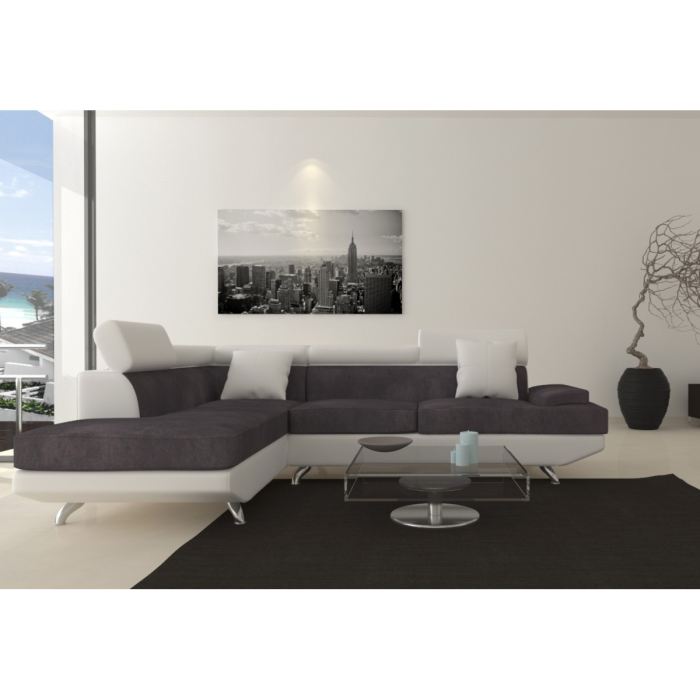 • SCOOP Canapé PU et tissu d'angle gauche blanc/gris