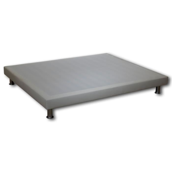 Sommier Cedre 140x190 cm - blanc - 10 lattes fixes - toile de fond anti- poussiere - garnissage mousse polyuréthane & ouate - tissu simili - hauteur 12 cm - pieds teinte alu