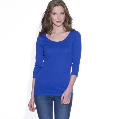 Buy T-shirt manches 3/4 encolure arrondie pur coton, LA REDOUTE CREATION on Pickture.