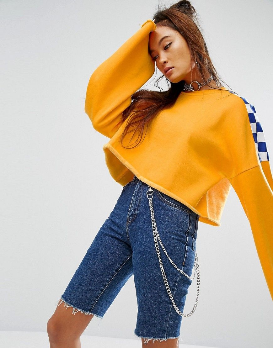 • The Ragged Priest - Sweat-shirt court avec manches larges et motif damier - Jaune