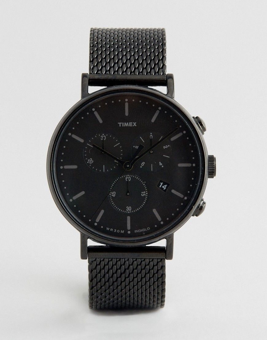 Timex - - Fairfield - Montre chronographe 41 mm avec bracelet en maille - Noir IP - Noir