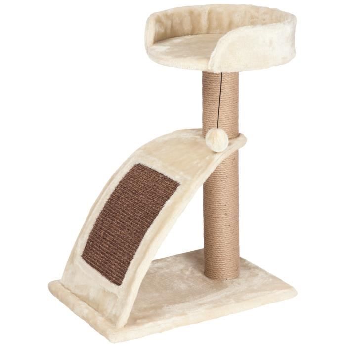 Arbre ? chat Bionda - En bois recouvert de peluche et sisal ? griffer - Poteaux habillés de jute - Avec pont griffoir et jouet suspendu ? un fil - Hauteur : 66 cm - Emprise au sol : 35x50 cm - Poteau : ? 9 cm - Coloris : beige.
