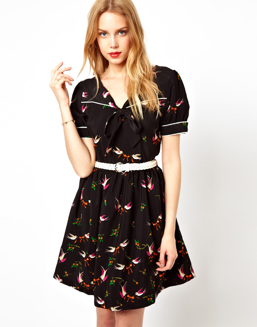 Trollied Dolly - Robe avec ceinture et imprimé oiseaux