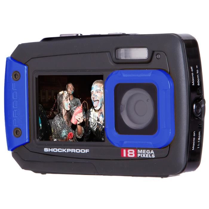 Appareil photo numérique Waterproof et Shockproof - 18,1 Mpx - Double Ecran : Ecran avant 1,8"/Ecran arri?re 2,7" - Résistant aux chocs et aux intempéries - Flash Automatique - Stabilisateur d?images - Video : HD 720P