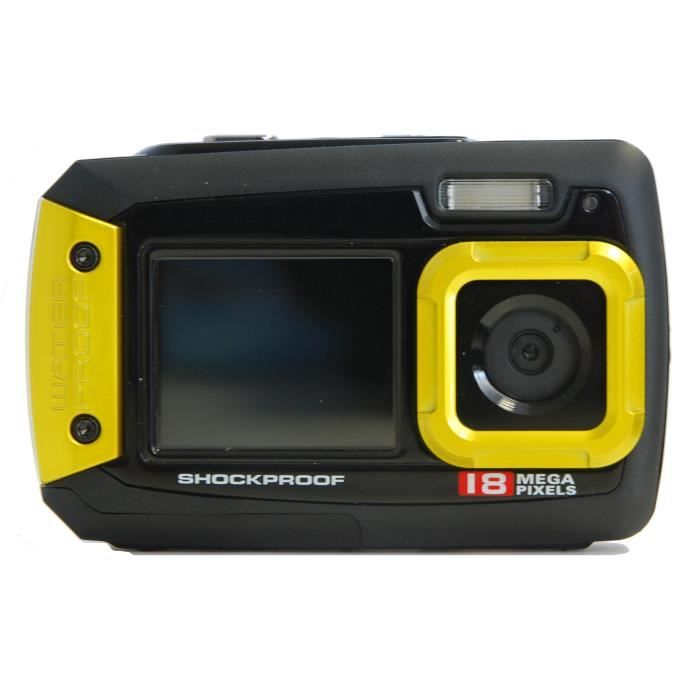 Appareil photo numérique Waterproof et Shockproof - 18,1 Mpx - Double Ecran : Ecran avant 1,8"/Ecran arri?re 2,7" - Résistant aux chocs et aux intempéries - Flash Automatique - Stabilisateur d?images - Video : HD 720P