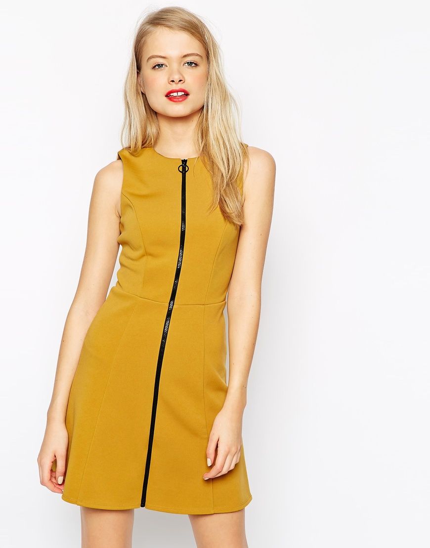 • ASOS A-Line Skater Dress with Zip Front - Mustard