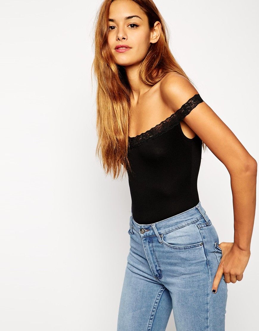 Buy ASOS - Body à épaules dénudées, décolleté, body Asos for women on Pickture, in trends like ASOS, Body, dentelle, Noir