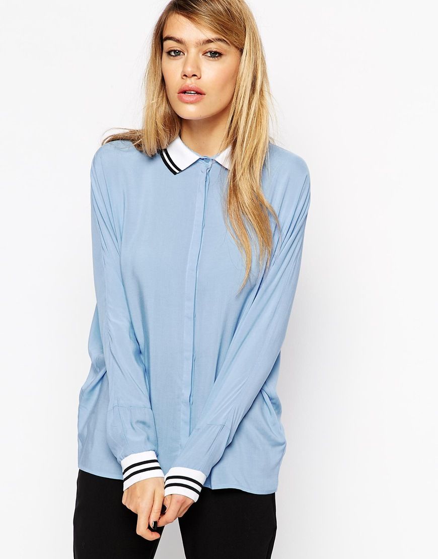 ASOS - Chemise casual avec col et poignets en jersey - Bleu