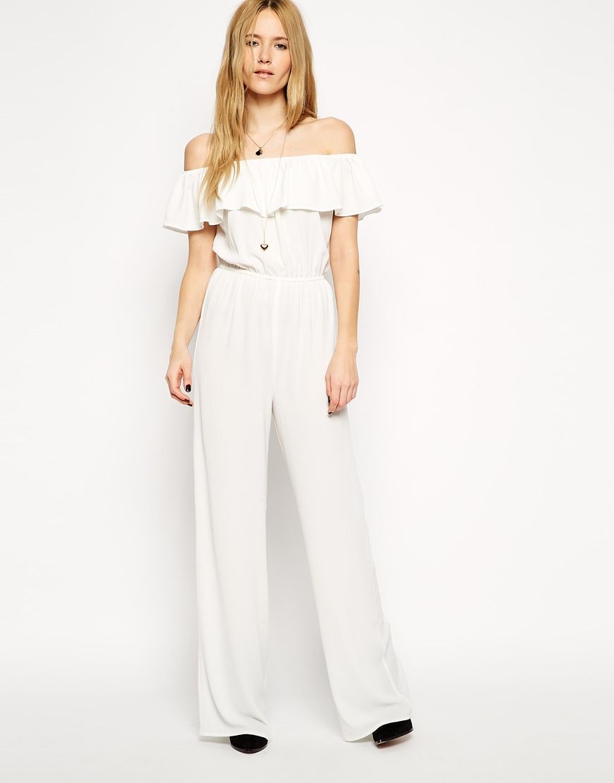 ASOS - Combinaison avec épaules dénudées à volants - Ivoire