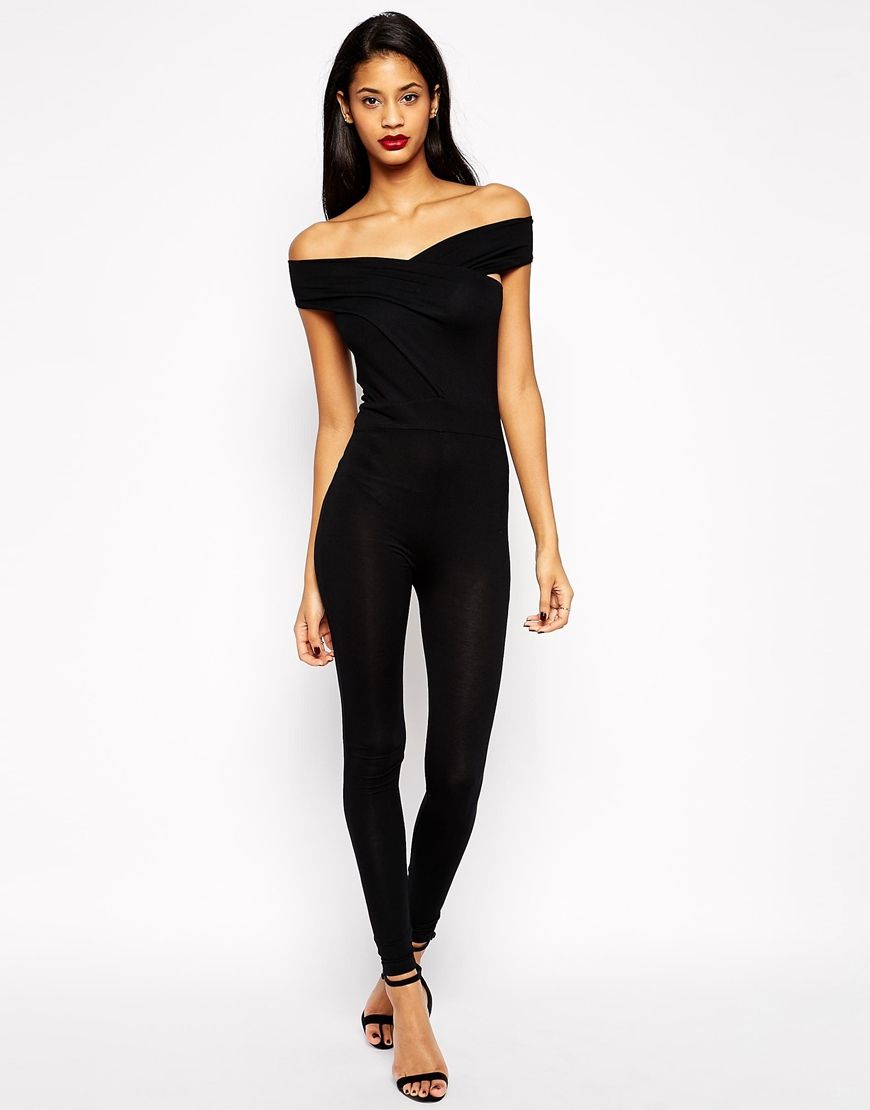 • ASOS - Combinaison moulante à encolure cache-cœur style Bardot - Noir