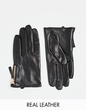 • ASOS - Gants en cuir pour écran tactile avec fermeture éclair - Noir