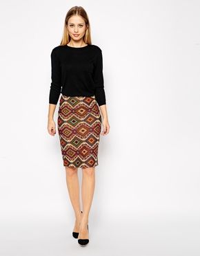 • ASOS - Jupe fourreau texturée à imprimé aztèque - Multi