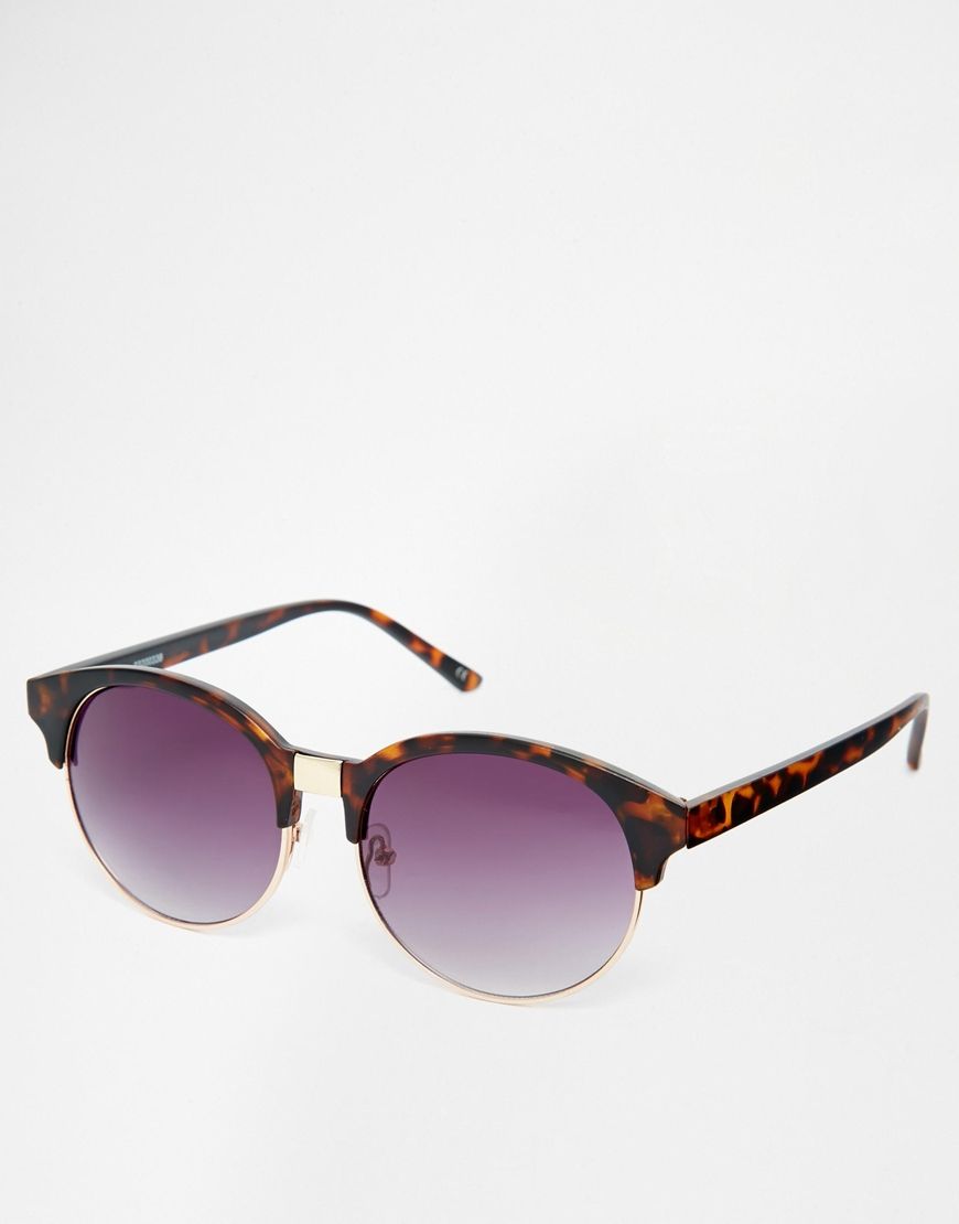 • ASOS - Lunettes de soleil rondes à demi-monture - Écaille