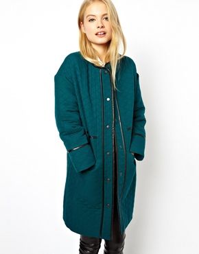 • ASOS - Manteau entièrement matelassé avec bordures en PU - Teal