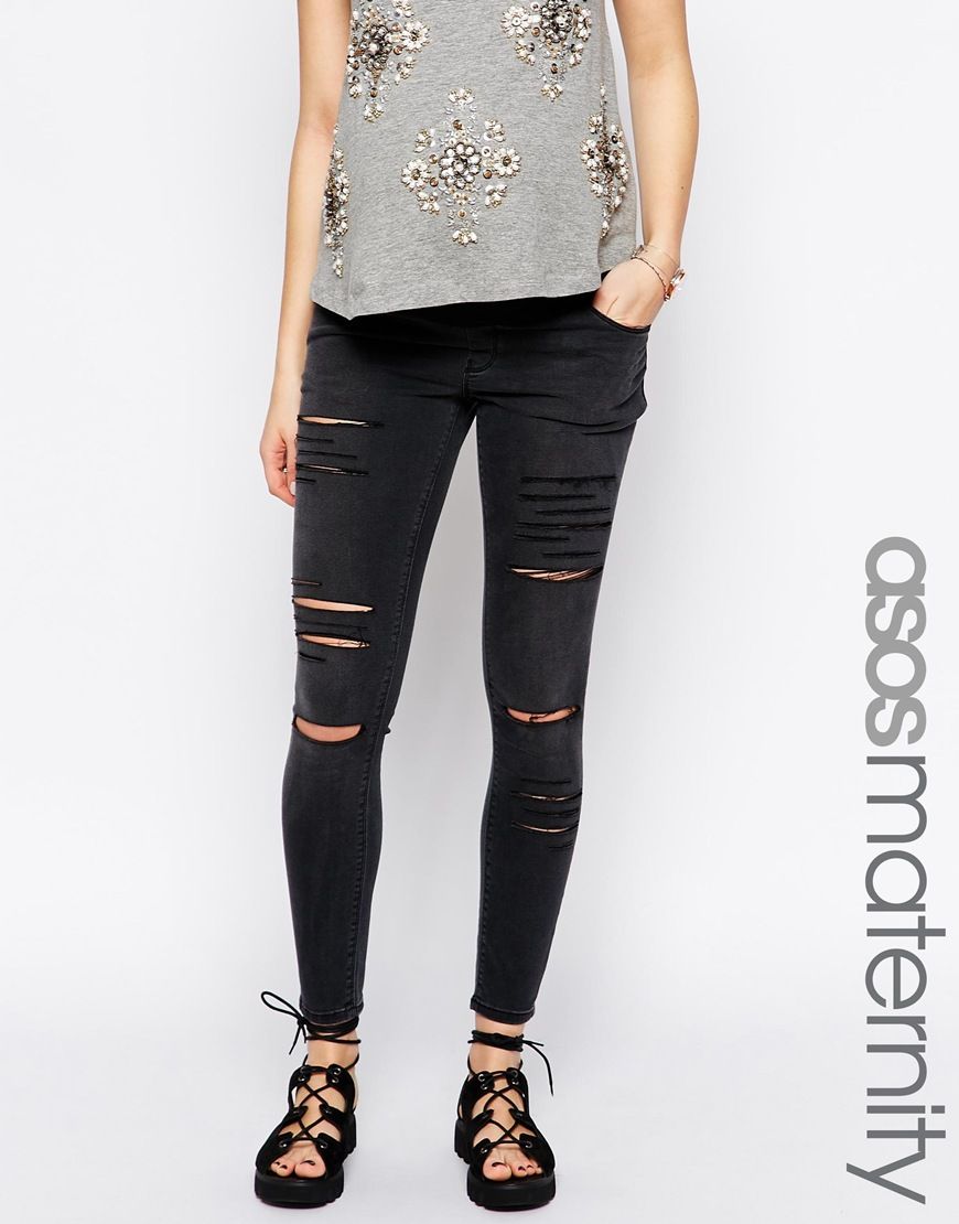 ASOS Maternité - Ridley - Jean skinny délavé longueur cheville avec déchirures extrêmes - Anthracite - Gris anthracite