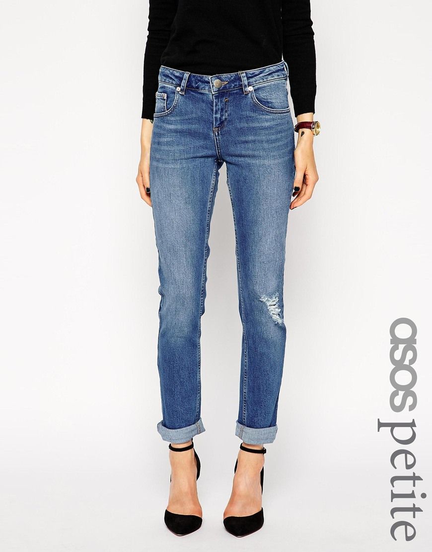 • ASOS PETITE - Kimmi - Jean boyfriend stretch effet rétréci et délavage moyen avec genou déchiré - Délavage moyen vintage