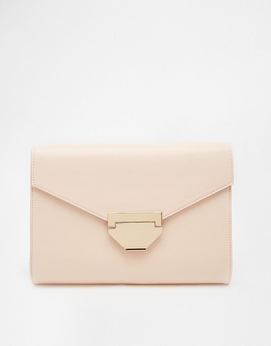 ASOS - Pochette enveloppe avec boucle plate - Nude