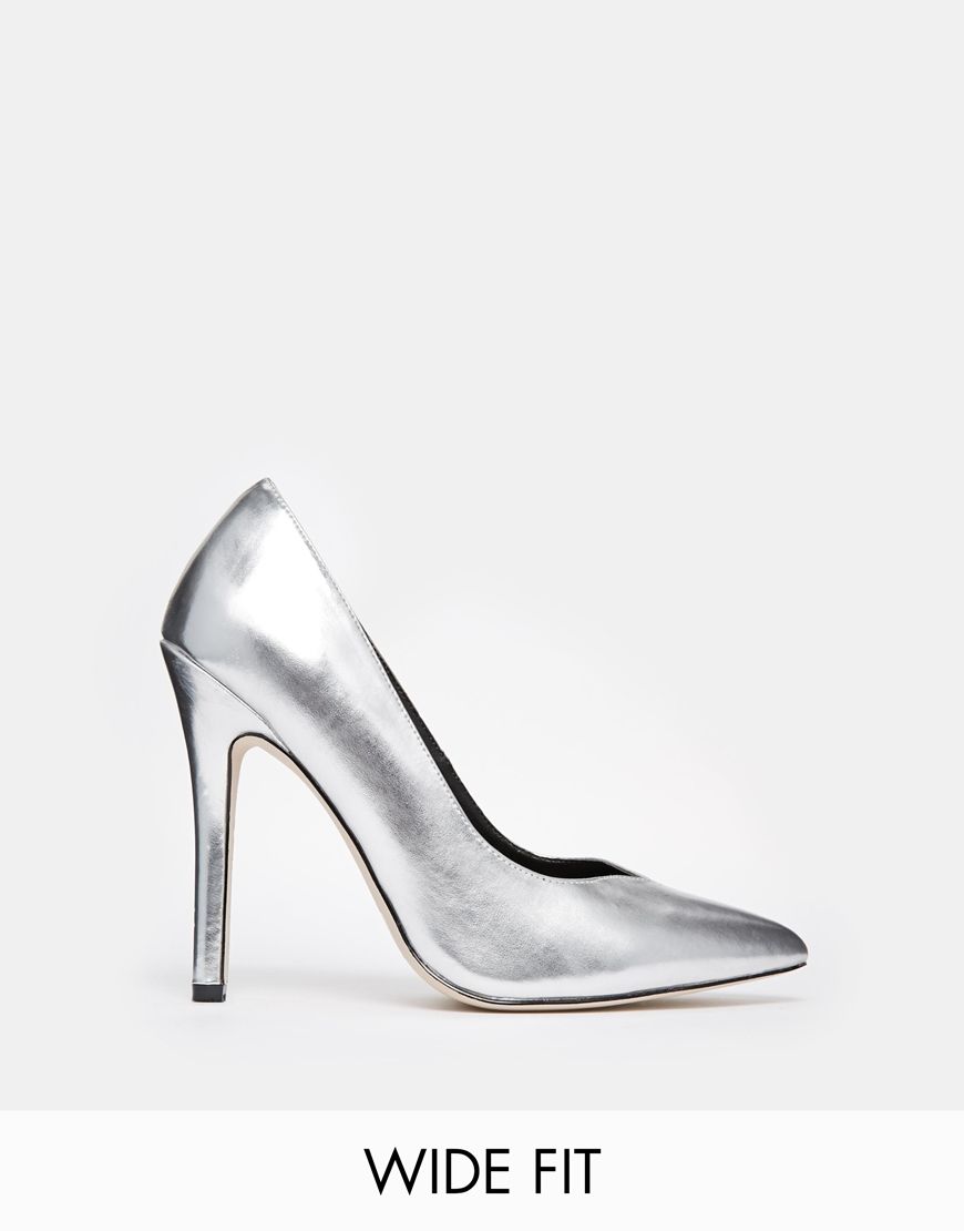 • ASOS - POSITIVE - Chaussures pointues pointure large à talons hauts - Argenté
