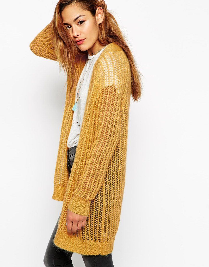 ASOS Premium - Cardigan en mohair ajouré - Mustard