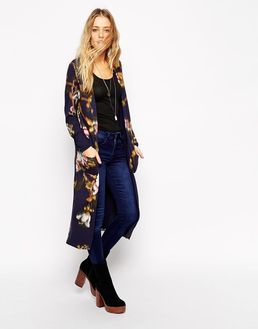ASOS Premium - Kimono long à fleurs floues - Multi