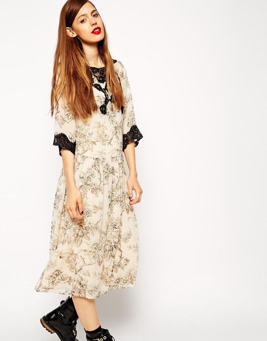 Buy ASOS Premium - Robe mi-longue imprimée avec, robe Asos for women on Pickture, in trends like ASOS, Robe, dentelle