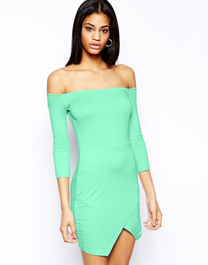 Buy ASOS - Robe asymétrique style Bardot, robe Asos for women on Pickture, in trends like ASOS, Robe, style, Bleu