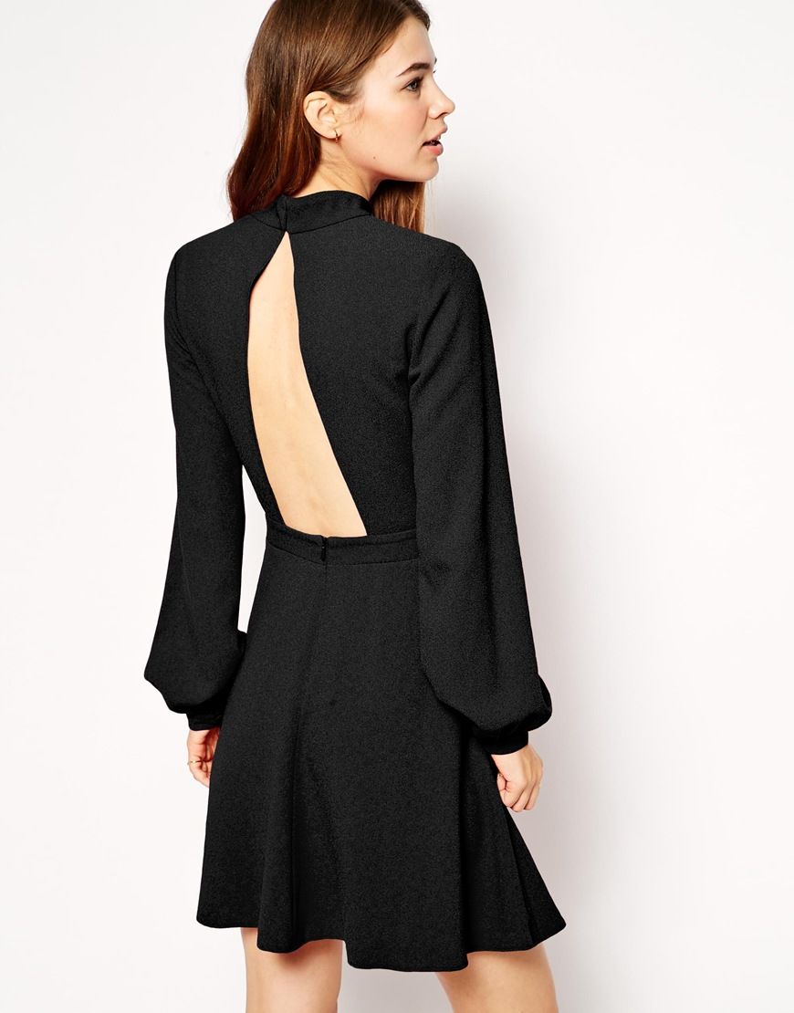 ASOS - Robe patineuse à encolure haute avec découpe au dos - Rose orchidée