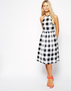 • ASOS - Robe patineuse mi-longue à carreaux vichy - Imprimer