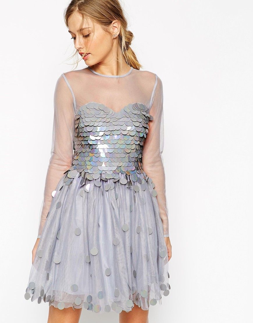 • ASOS SALON - Robe de bal de fin d'annĂ©e Ă  corsage scintillant - Bleu pâle