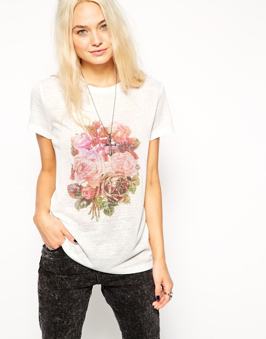 Buy ASOS -T-shirt avec joli motif floral texturé -, t-shirt Asos for women on Pickture, in trends like ASOS, motif, floral, Blanc