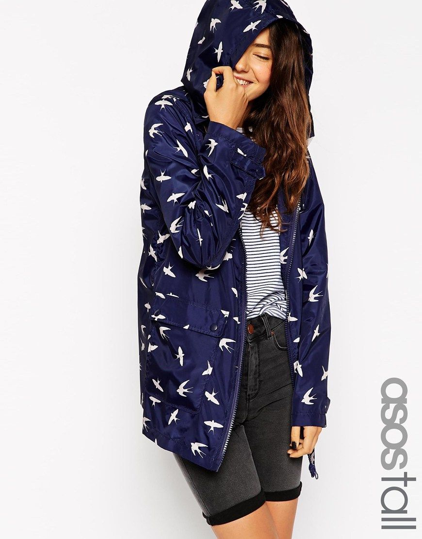 ASOS TALL - Ciré pliable imprimé hirondelle - Bleu marine