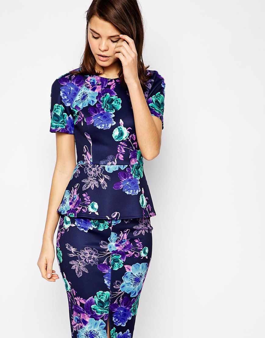ASOS - Top coordonné à basque et imprimé fleuri de couleur vive - Bleu