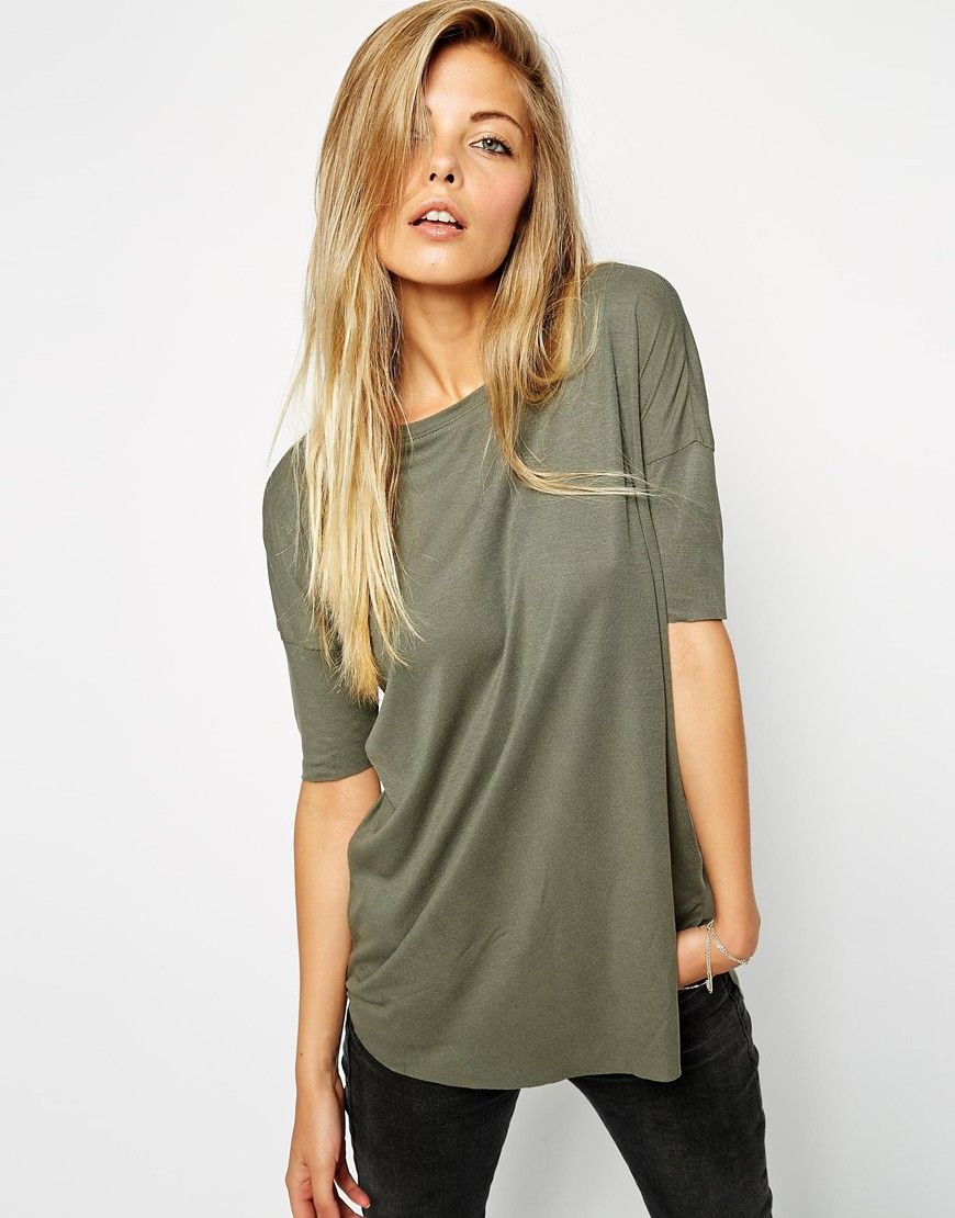 Buy ASOS - Top côtelé à manches courtes, top Asos for women on Pickture, in trends like ASOS, Top, Kaki
