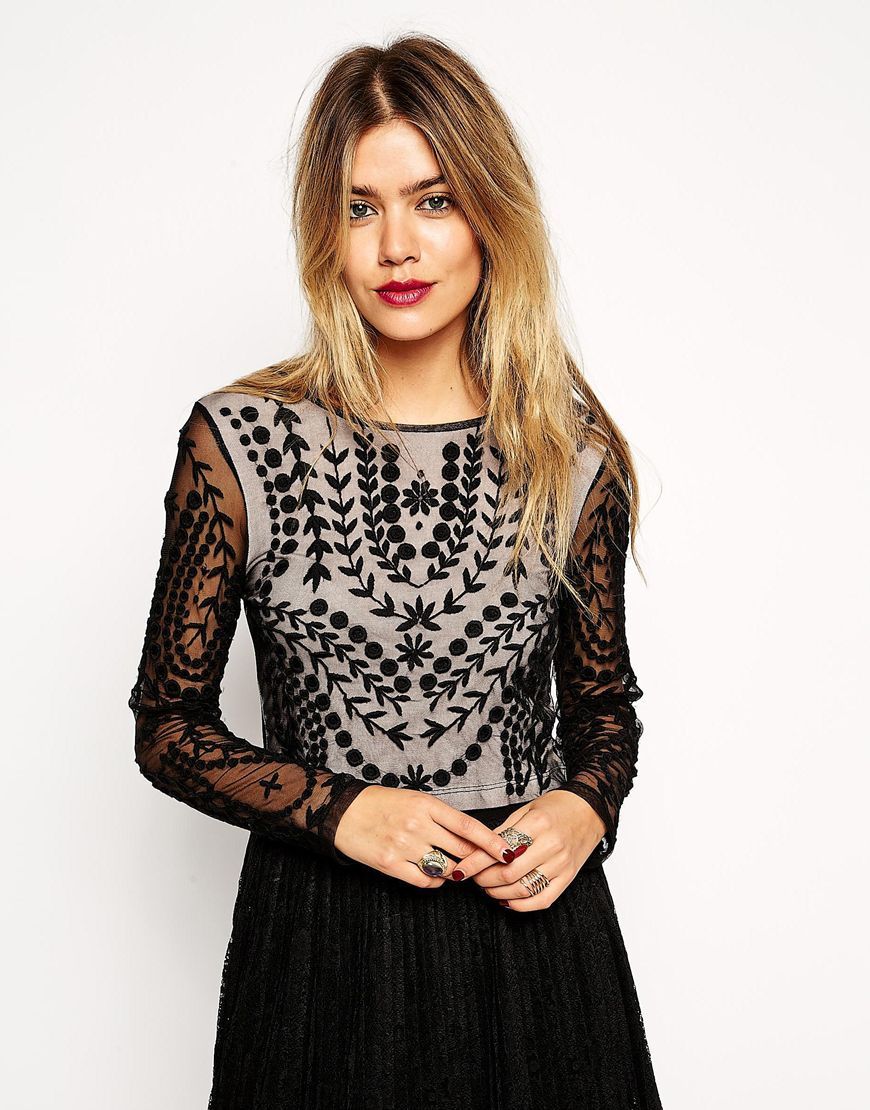 Buy ASOS - Top court à broderies et manches longues, top Asos for women on Pickture, in trends like ASOS, Top