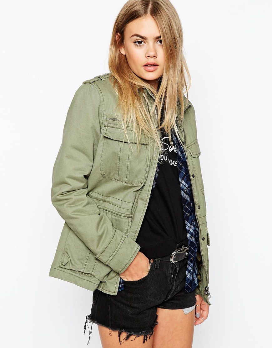 • ASOS - Veste en coton délavé à détail fonctionnel et doublure matelassée - Bleu marine