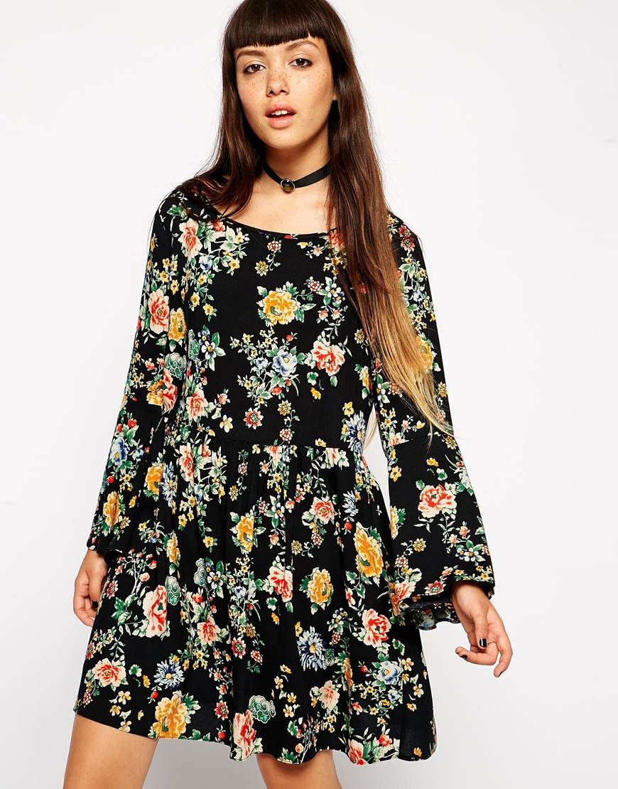 Buy ASOS Vintage - Robe à manches évasées, robe Asos for women on Pickture, in trends like ASOS, Vintage, Robe, Fleurs, noir