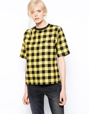 BACK By Ann-Sofie - T-shirt en flanelle à carreaux avec poche sur le devant - Carreaux jaunes