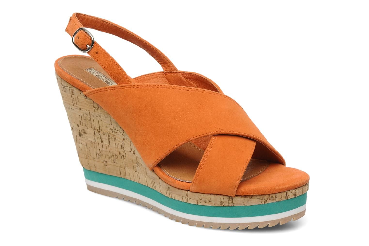 La tendance du tricolore s'impose irrésistiblement avec les sandales Blais. Faites entrer du soleil dans votre garde-robe, et vitaminez votre look en arborant les Buffalo Blais ! Une robe de nubuck habille deux larges brides qui viennent se croiser élégamment sur le cou-de-pied, et un talon compensé effet liège très seventies pour un look de pin-up garantit.