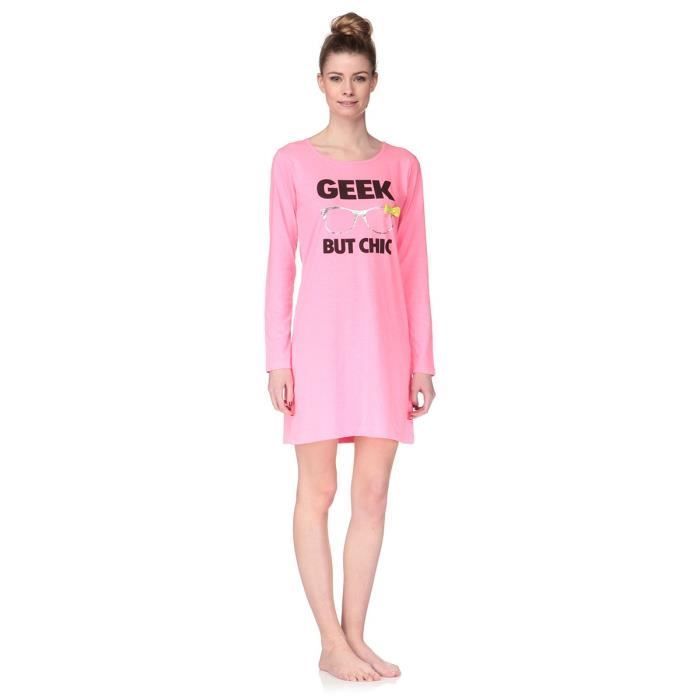 Chemise de nuit  65% polyester, 35% coton, rose et noir. Col arrondi.