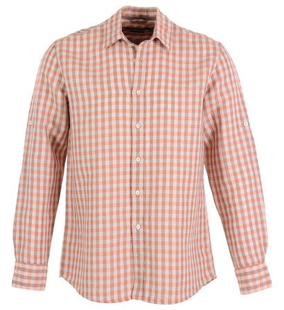 Buy Chemise droite en lin à carreaux col italien, chemise for women on Pickture, in trends like Chemise, lin, carreaux, Orange, Homme