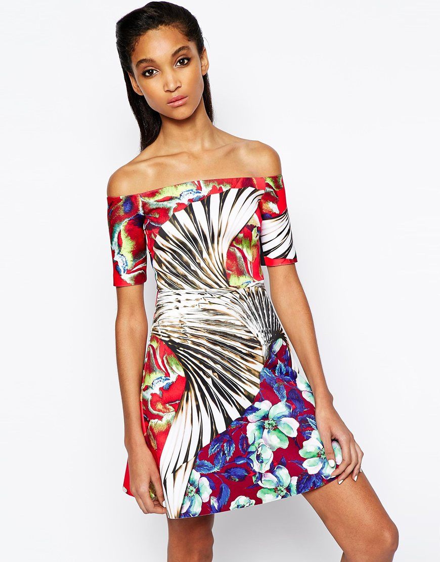 Clover Canyon - Robe style Bardot en néoprène à imprimé fleurs style papier peint - Multi