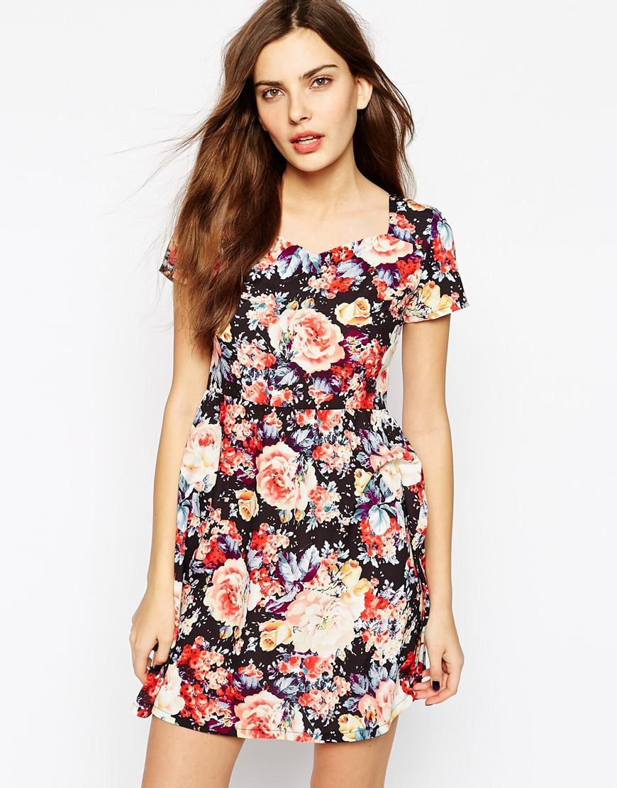 Club L - Robe à imprimé fleuri et lien au dos - Noir fleuri