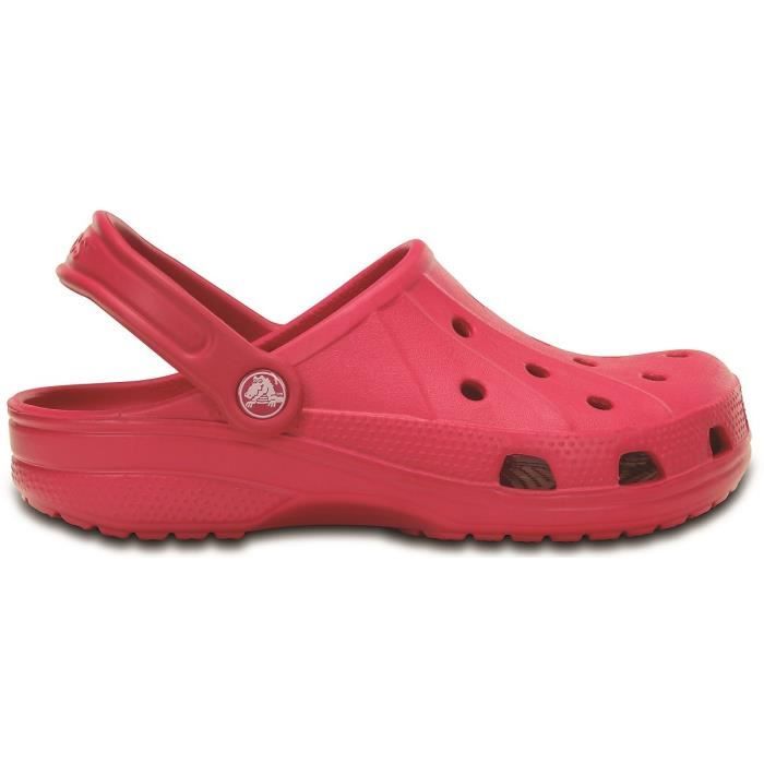 Sabots en synthétique, coloris framboise. Fermeture par bride au talon.