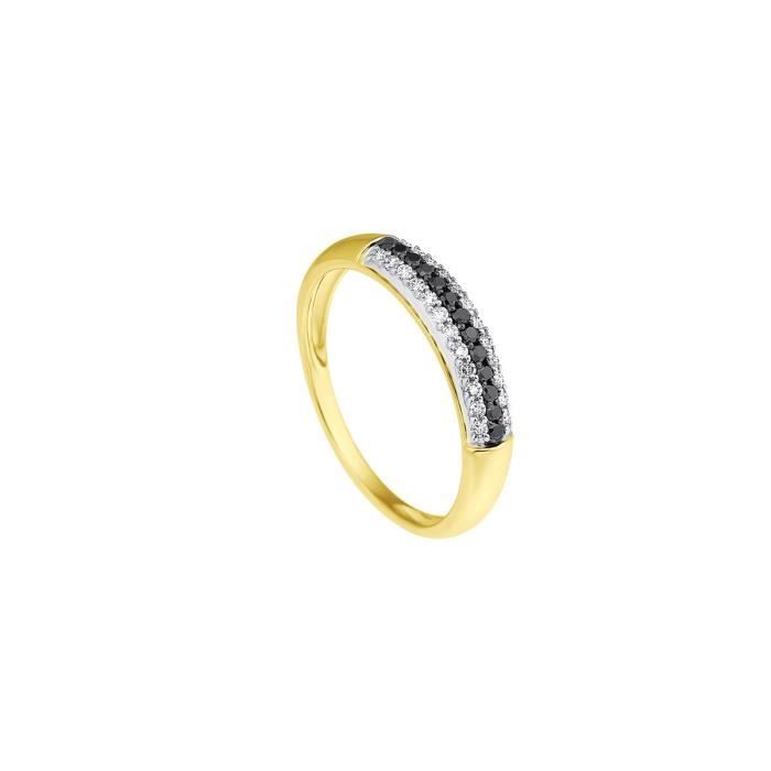 DIAMOND LANE Bague Demi Alliance Or Jaune 375° et Diamants Blancs et Noirs Femme