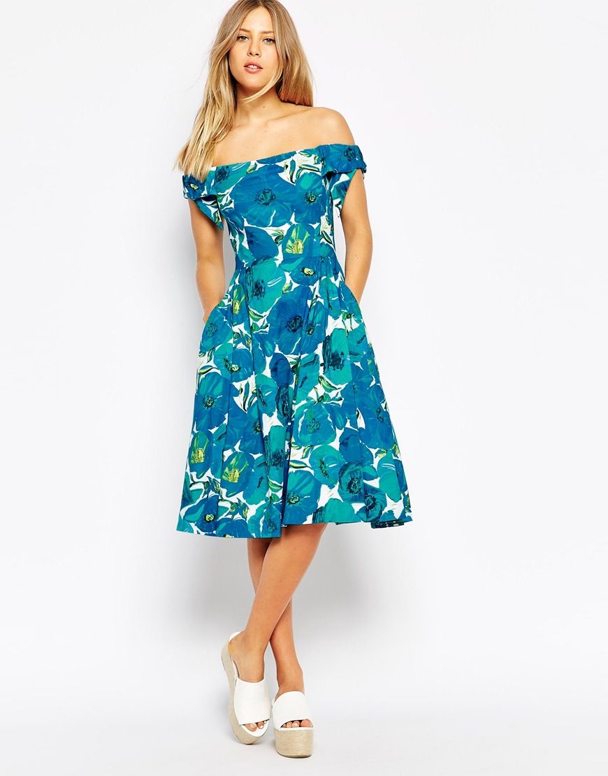 Emily & Fin - Dapne - Robe à épaules dénudées - Bleu