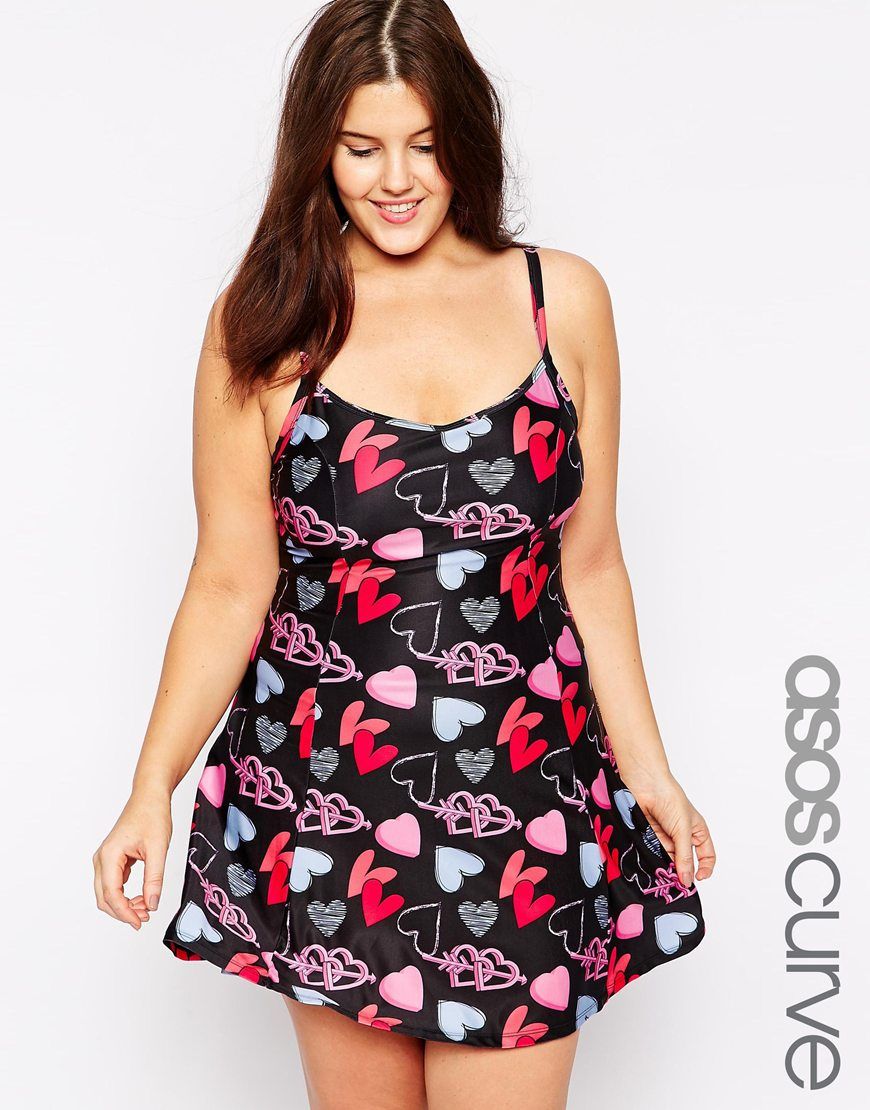 Exclusivité ASOS CURVE - Robe de bain à imprimé cœurs en graffiti - Multi